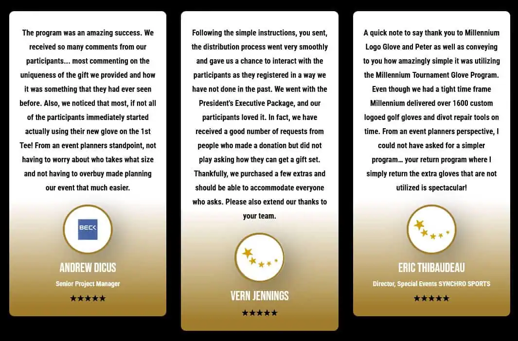At Millennium Logo Glove, we’re more than a supplier; we’re a partner in your charity golf tournament’s success. Our commitment to quality, customization, and understanding of your unique needs enables us to offer unparalleled service that elevates every aspect of the tournament.